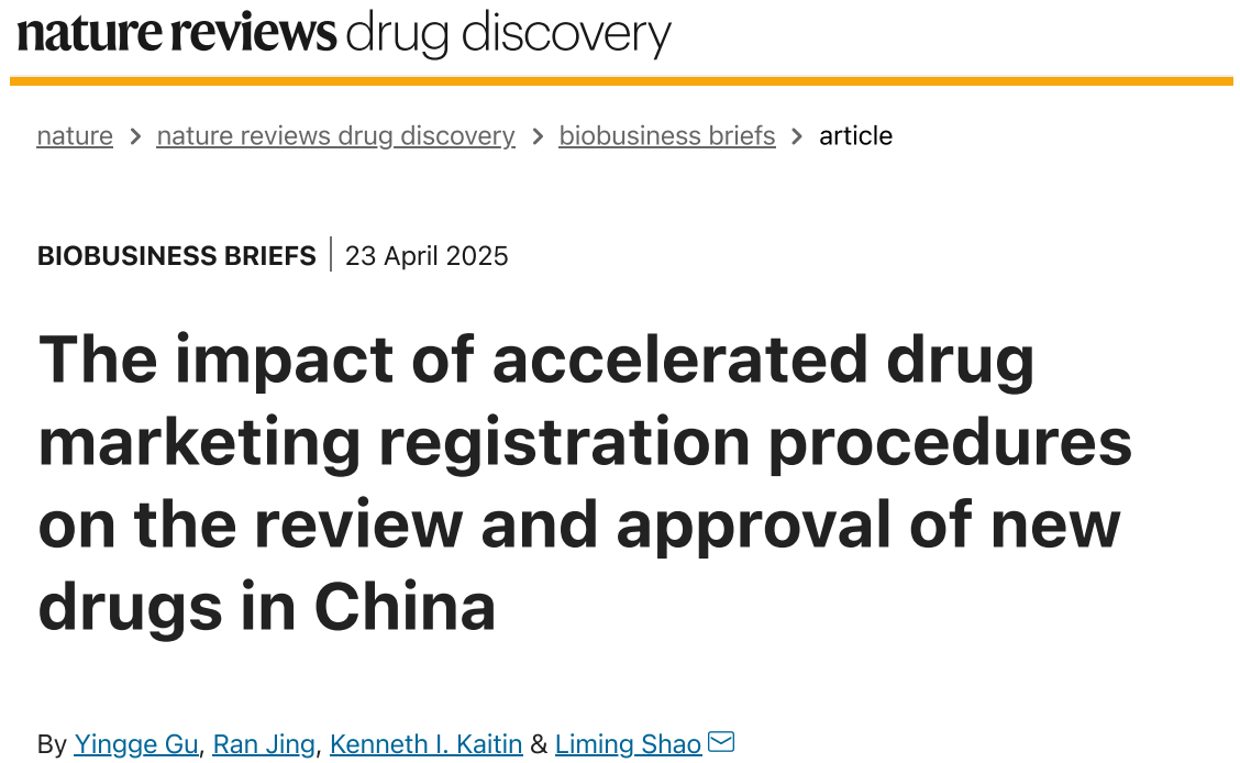 4月23日,熟女性交 教授、上海市药物研发协同创新中心主任邵黎明及其智库团队的研究文章“中国药品加快上市注册程序对新药审评审批的影响”(The impact of accelerated drug marketing registration procedures on the review and approval of new drugs in China)在Nature Reviews Drug Discovery期刊上线发表。