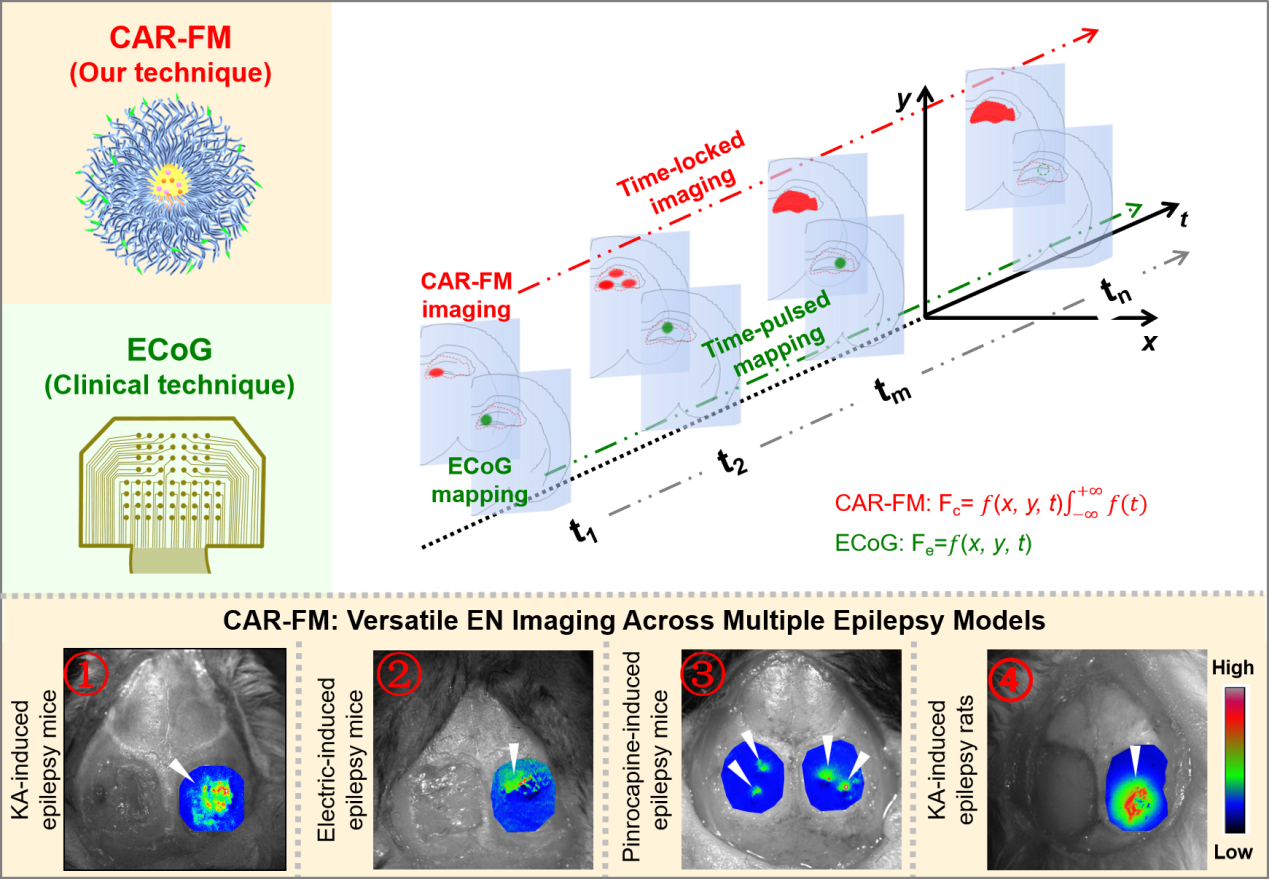 超过30%的癫痫患者表现出耐药性,被称为难治性癫痫。手术切除或消融病灶是实现治愈的有效途径,而精准界定致痫灶则是手术成功的核心前提。然而,由于致痫灶边界存在显著的异质性,精准定位一直是神经外科面临的关键技术瓶颈。现有定位技术中,术中皮层脑电图易受麻醉干扰且空间分辨率较低;MRI/PET等影像技术主要提供术前结构成像,难以实现术中快速导航;而现有探针普遍面临灵敏度低、特异性不足及入脑量不足等问题。